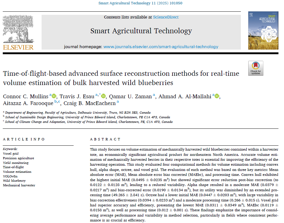 Time-of-flight-based advanced surface reconstruction methods for real-time volume estimation of bulk harvested wild blueberries
